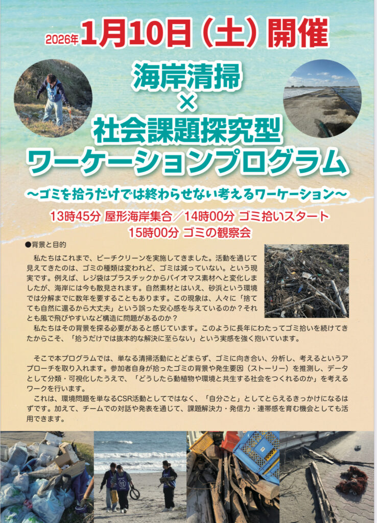 「海岸清掃 × 社会課題探究型ワーケーションプログラム ~ ゴミを拾うだけでは終わらせない・考えるワーケーション ~」