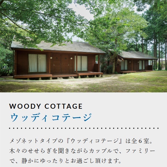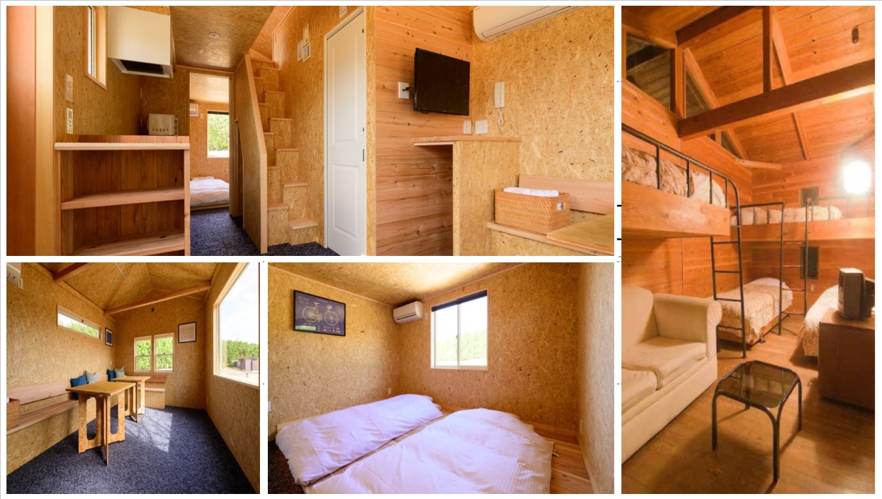 お部屋は2タイプのご用意。New Park Cottage 2名~8名様がお泊りできて、 6棟のご用意(MAXは48人)。Woody Cottage は1名~4名がお泊りできて、6室のご用意。(MAXは24人)