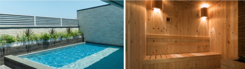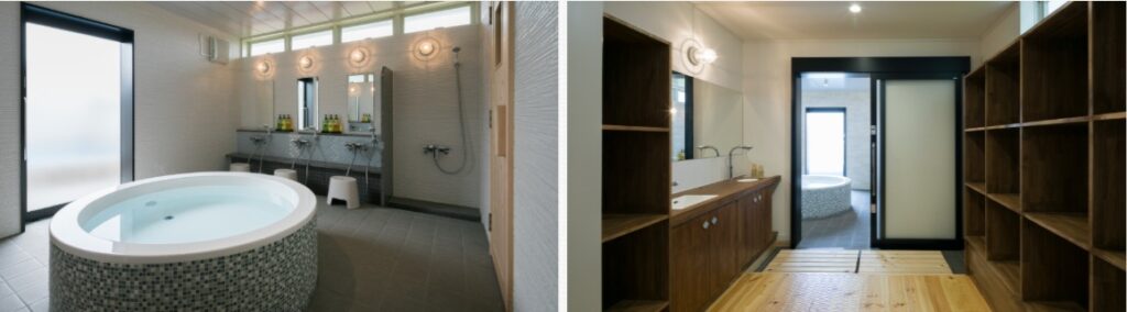 各お部屋にもシャワーは完備されてますが、別棟に星空満点の露天風呂・サウナが完備されています。23時まで使用可。