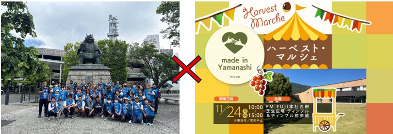 毎月第4日曜日に甲府駅南口信玄公銅像前に集合して市内のゴミ拾いを行っているまるごみ山梨が、まるごみJAPANの掲げる日本まるごとゴミ拾いに賛同参加。今回はFM FUJIが主催するハーベストマルシェとコラボしてゴミ拾いの後はマルシェを楽しみます。甲府駅・笛吹市石和町・笛吹八代町などでゴミ拾いを行います。
